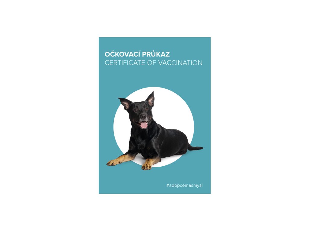 Očkovací průkaz s vlastním designem Dogpointu, bez zbytečného text navíc.